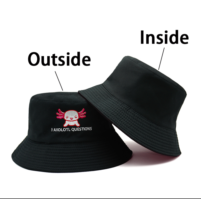 One Size Unisex Reversible Black I Axolotl Questions Bucket Hat
