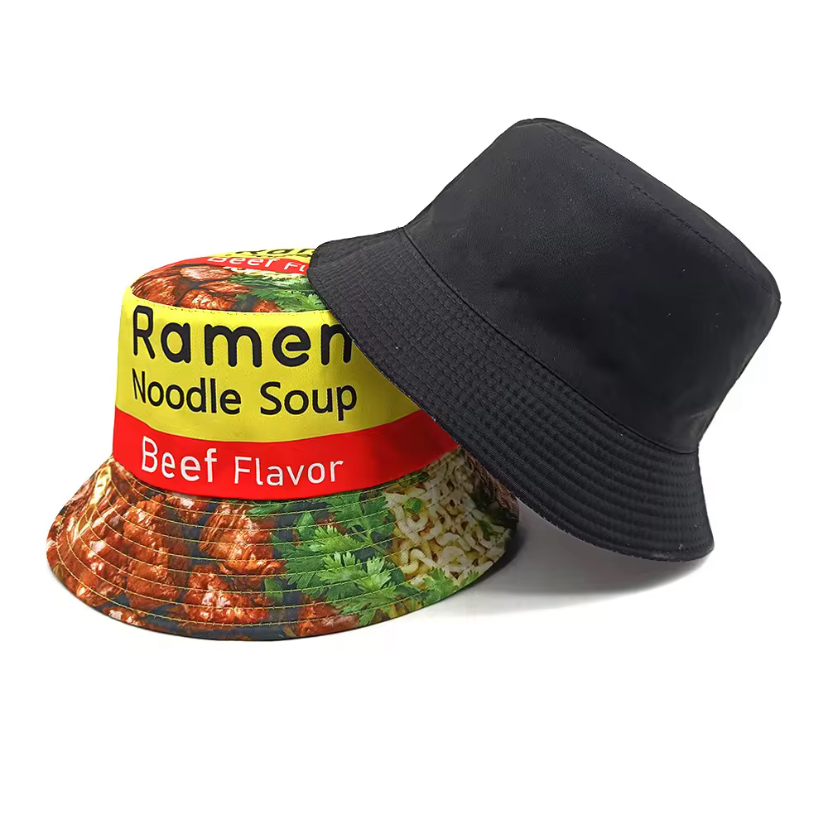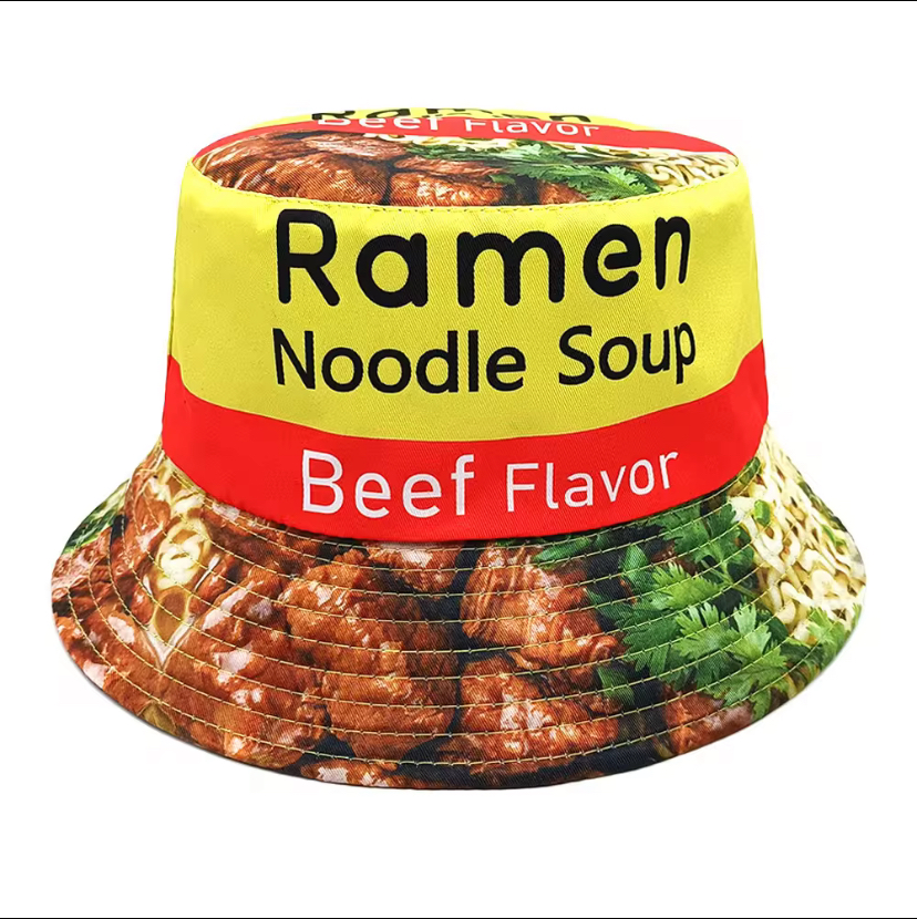 One Size Unisex Reversible Ramen Chicken/Beef Noodle Soup Bucket Hat